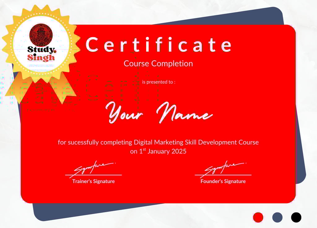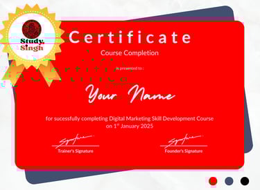 Upon successfully completing the Study Singh Digital Marketing Job Ready Course, youβll receive a globally recognized certificate of achievement ππ β your proof that youβre officially job-ready and industry-equipped πΌπ.